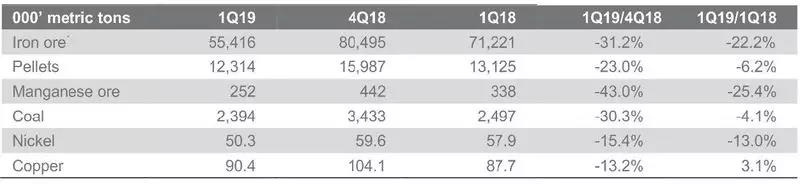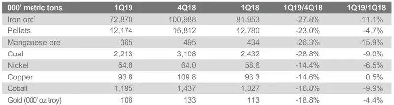 日前,淡水河谷發(fā)布2019年第一季度產(chǎn)銷(xiāo)量報告。