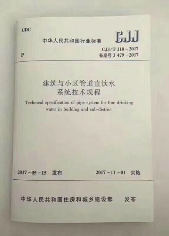 住房城鄉建設部關(guān)于發(fā)布行業(yè)標準《建筑與小區管道直飲水系統技術(shù)規程》為行業(yè)標準,編號為CJJ/T 110-2017,自2017年11月1日起實(shí)施。原行業(yè)標準《管道直飲水系統技術(shù)規程》CJJ/T 110-2206同時(shí)廢止。