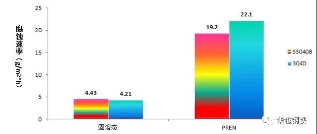 實(shí)驗結果:304D的耐點(diǎn)腐蝕能力與S30408相當。