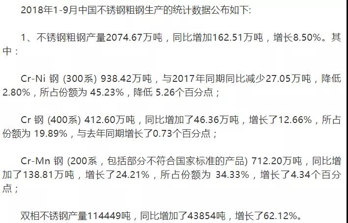 2018年前三季度中國不銹鋼粗鋼產(chǎn)量統計數據 不銹鋼閥門(mén)