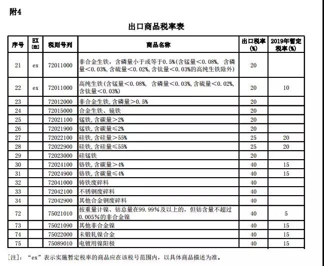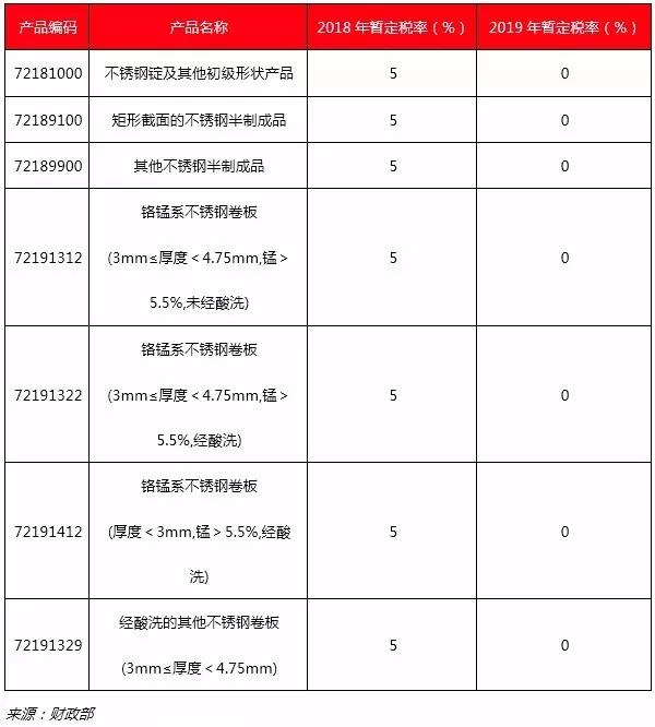 國務(wù)院關(guān)稅稅則委員會(huì )關(guān)于2019年進(jìn)出口暫定稅率等調整方案的通知:為促進(jìn)經(jīng)濟高質(zhì)量發(fā)展和進(jìn)出口貿易穩定增長(cháng),根據《中華人民共和國進(jìn)出口關(guān)稅條例》的相關(guān)規定,自2019年1月1日起對部分商品的進(jìn)出口關(guān)稅進(jìn)行調整,其中涉及部分不銹鋼進(jìn)出口制品的稅率變化。